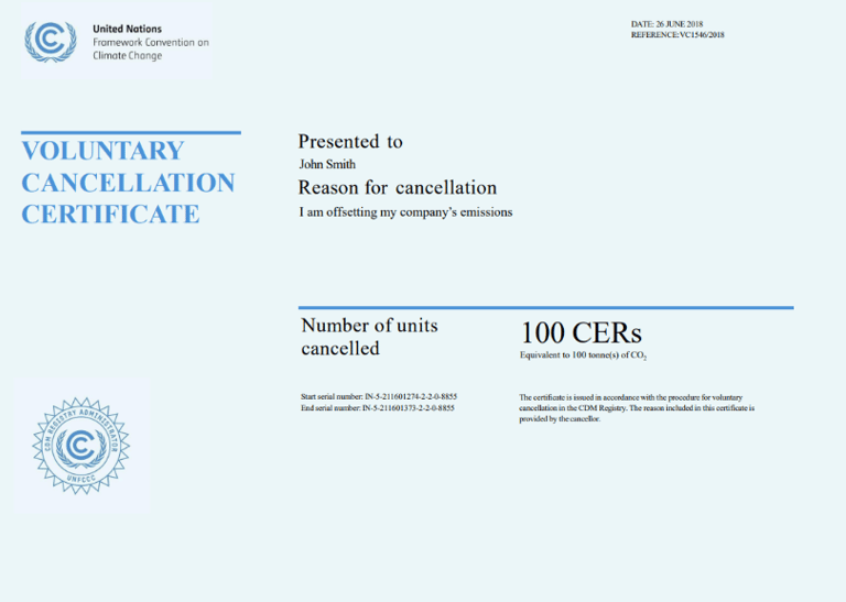 As Reduções Certificadas de Emissões (RCEs) são emitidas pelo Mecanismo de Desenvolvimento Limpo (MDL) da ONU